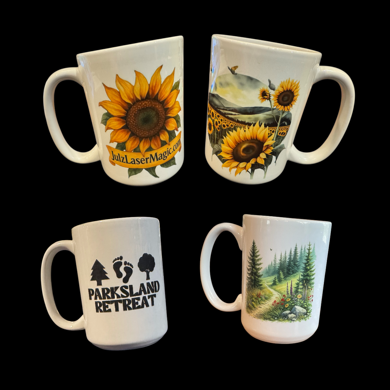 Start your mornings with a mug that’s as personal as your story. Our 15 oz ceramic mugs are professionally sublimated with your custom images or text on both sides — a keepsake meant to be used and loved every day.